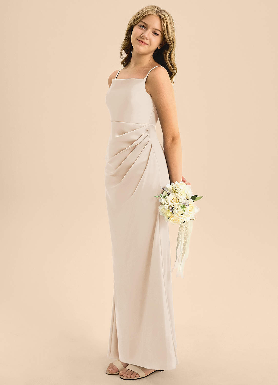 Jurk van Stretch Satijn met A-Lijn Geplooid Wit Albast