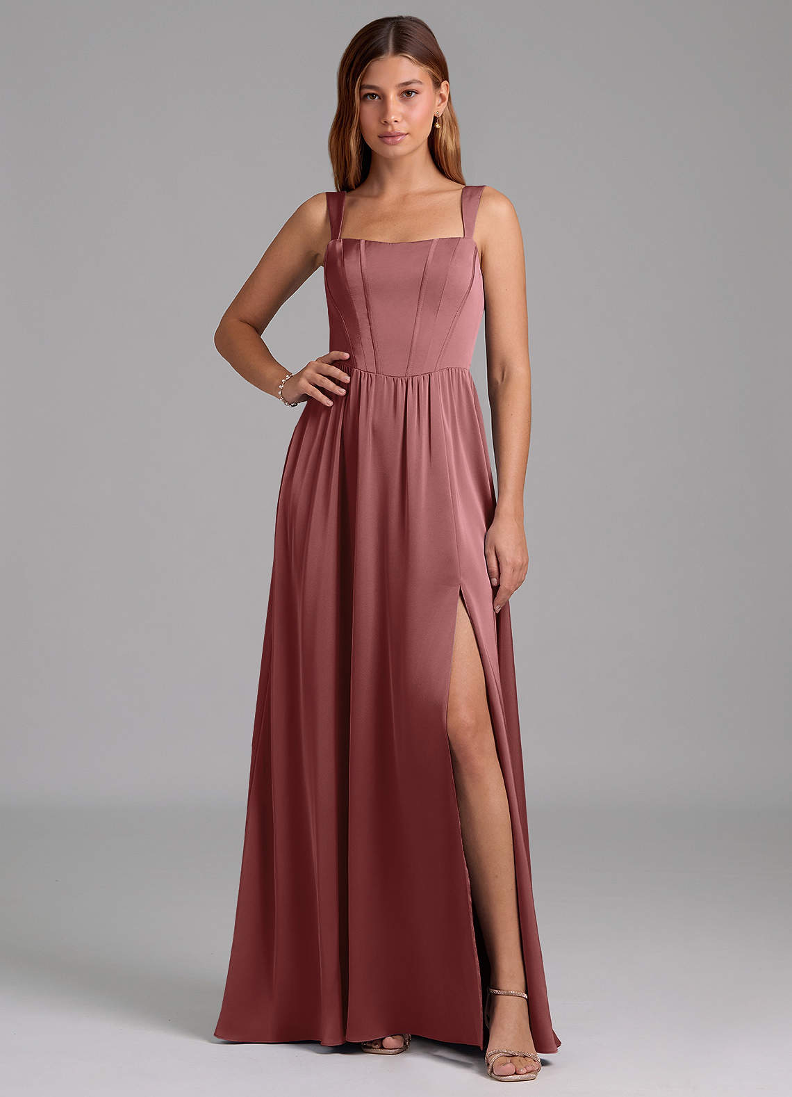 Jurk van Stretch Satijn met A-Lijn Zijsplit Amethist