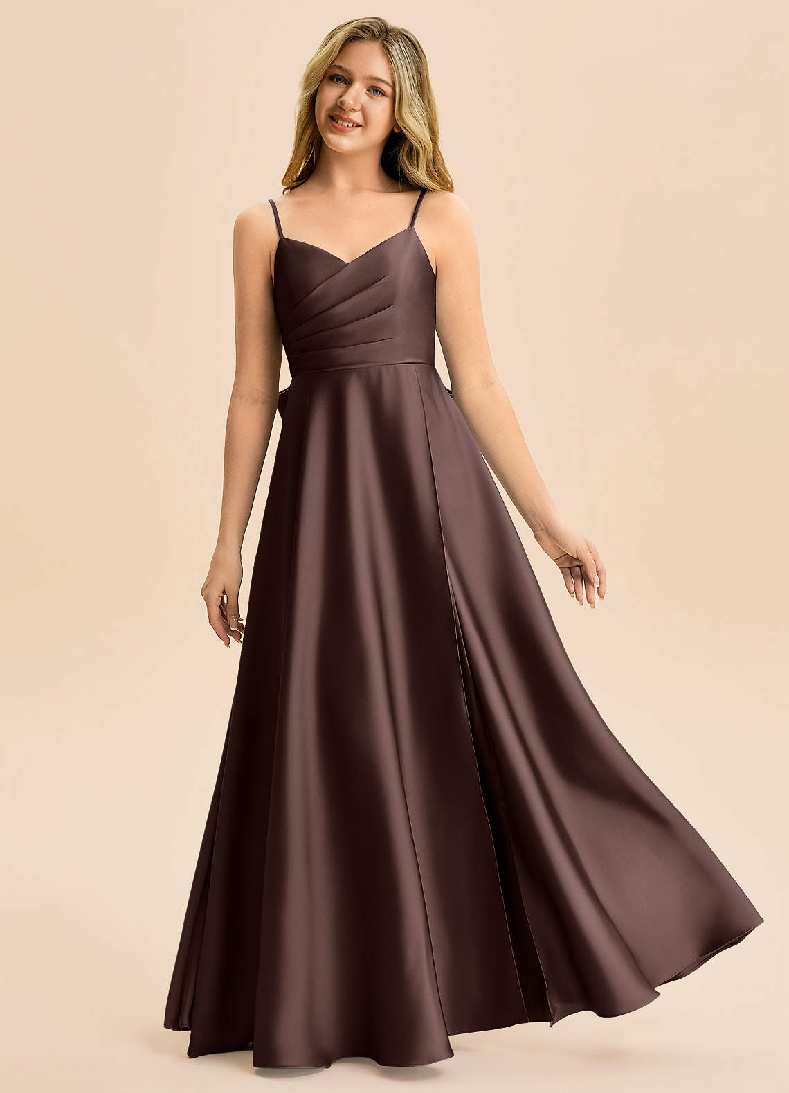 Jurk van Stretch Satijn met A-Lijn Geplooid Ganache