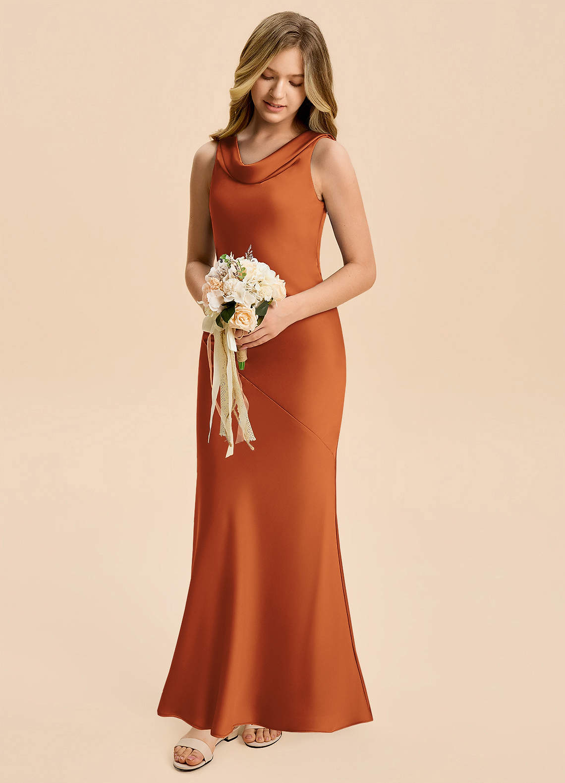 Jurk van Stretch Satijn met Zeemeermin Kaneel