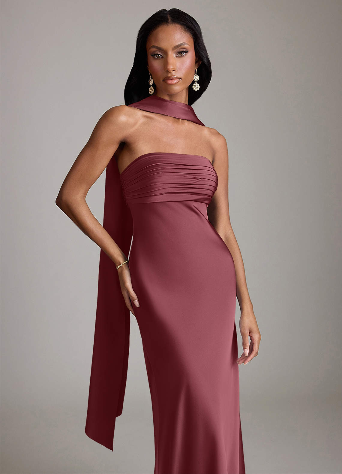 Jurk van Stretch Satijn met Zeemeermin Strapless Woestijnroos