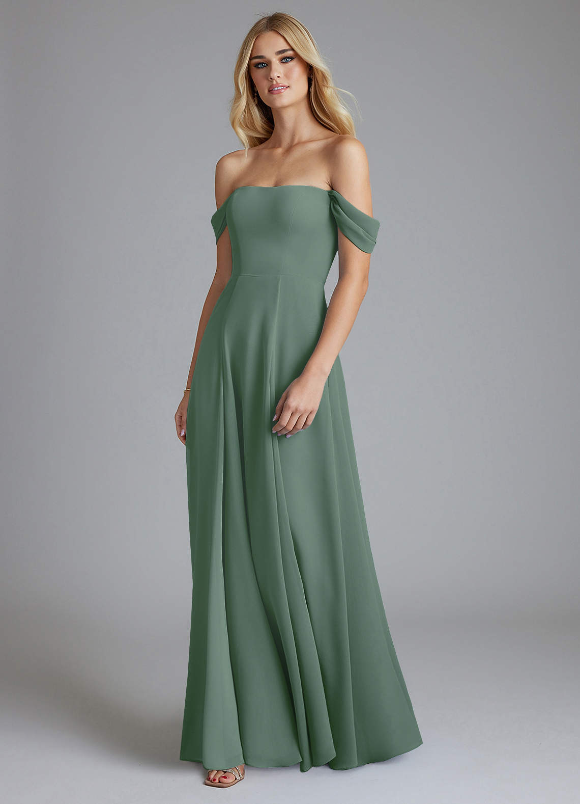 Jurk van Chiffon met A-Lijn Off the Shoulder Eucalyptus