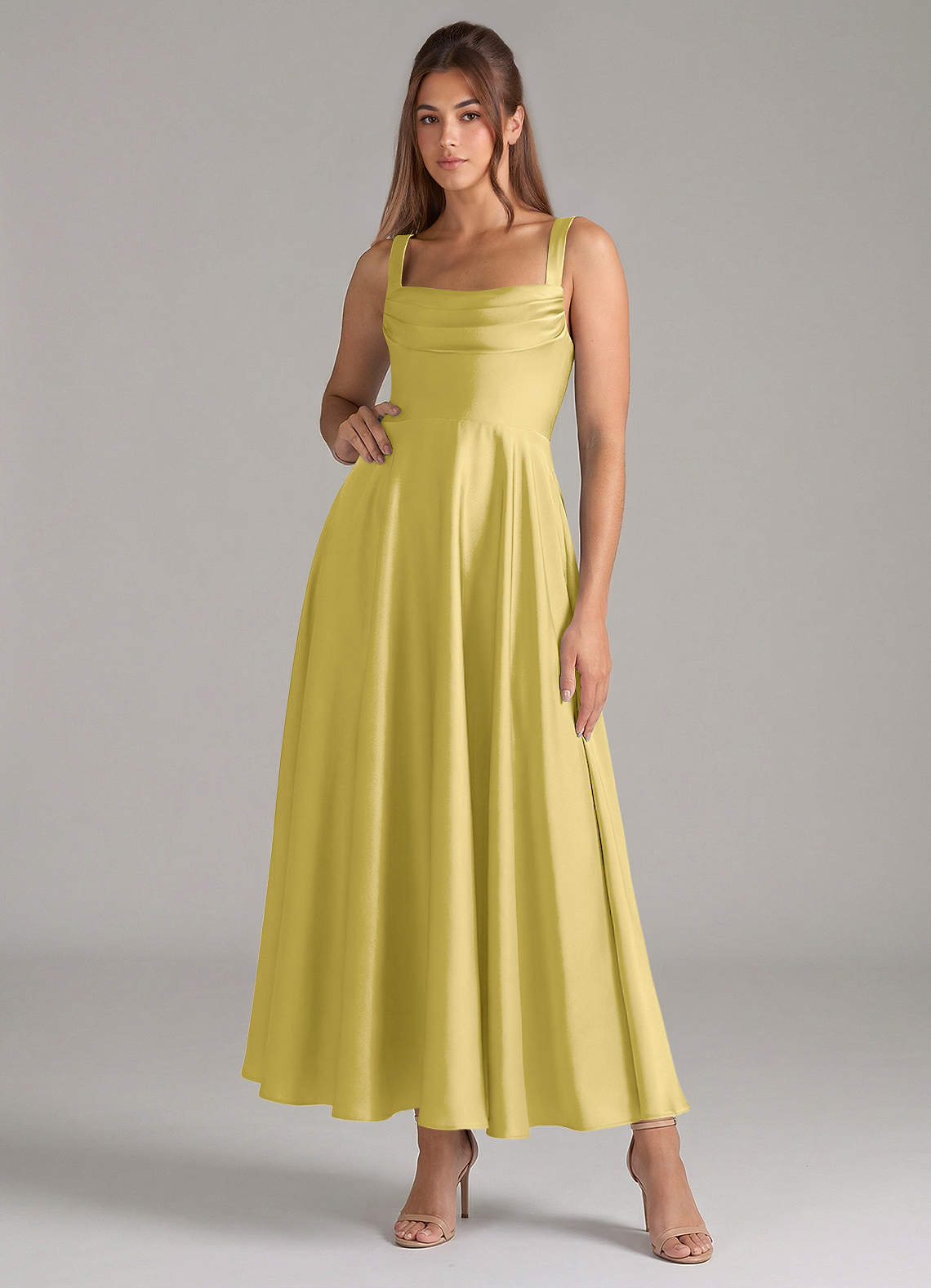 Jurk van Stretch Satijn met A-Lijn Geplooid Kanarie