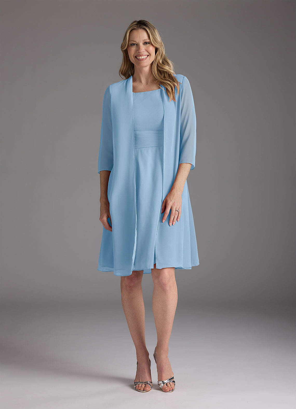 A-Lijn Jurk van Chiffon Schop gevouwen Poederblauw