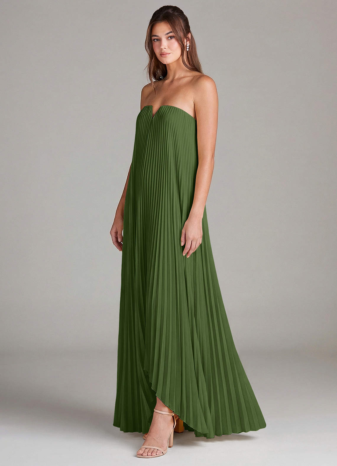 Converteerbaar Jurk van Stretch Satijn met A-Lijn Strapless Olijf