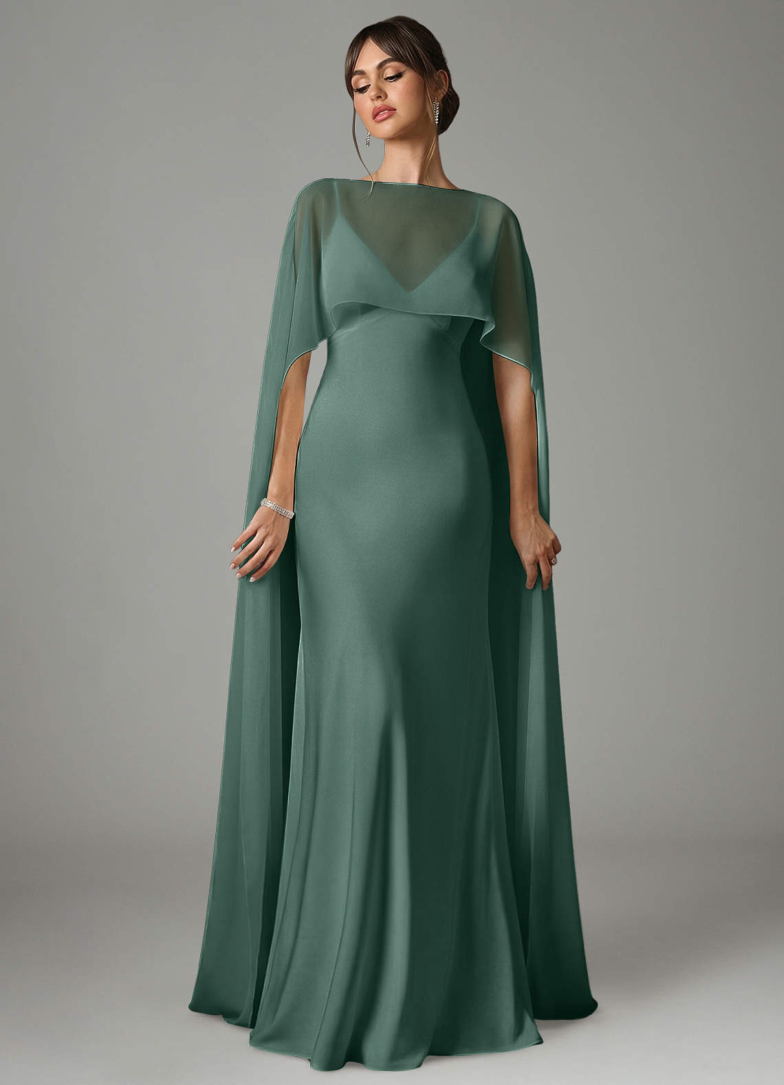 Jurk van Stretch Satijn met A-Lijn Eucalyptus