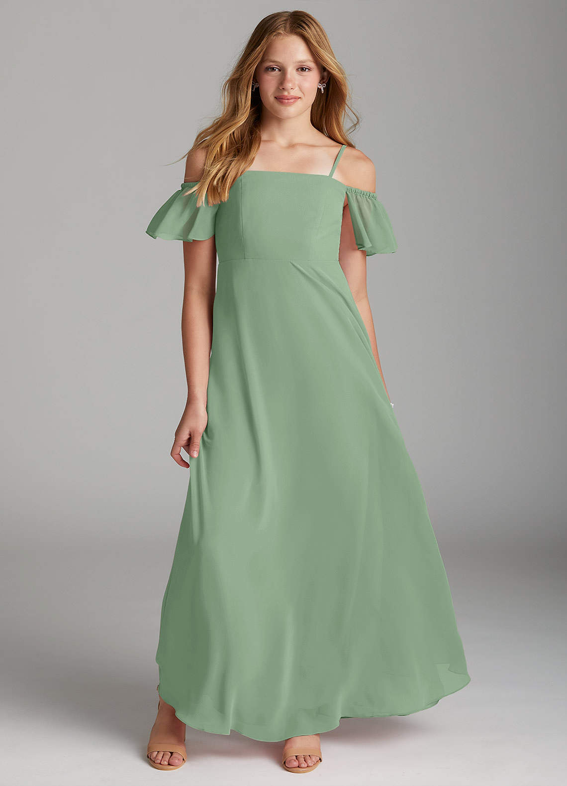 Jurk van Chiffon met A-Lijn Off the Shoulder Matcha
