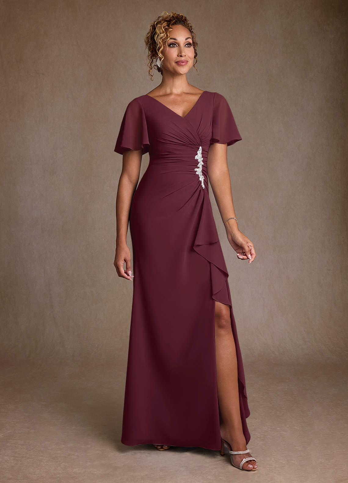 A-Lijn Jurk van Chiffon Geplooid Cabernet