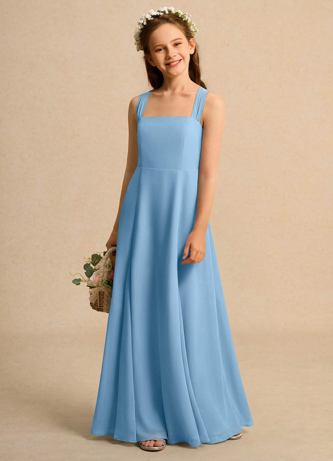 Azazie Tater Junior Formal Jurken voor bloemenmeisjes A-Lijn Jurk van Chiffon Geplooid Staal Blauw image1