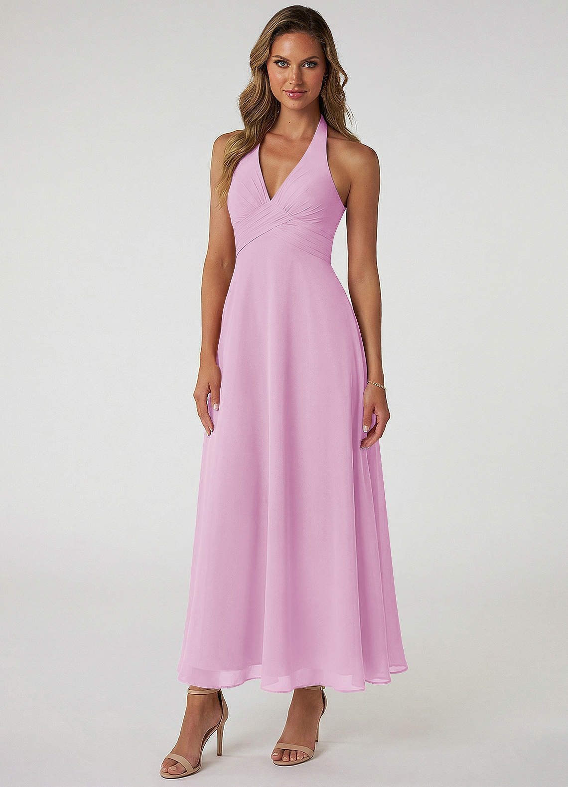Jurk van Chiffon met A-Lijn Geplooid Snoep Roze