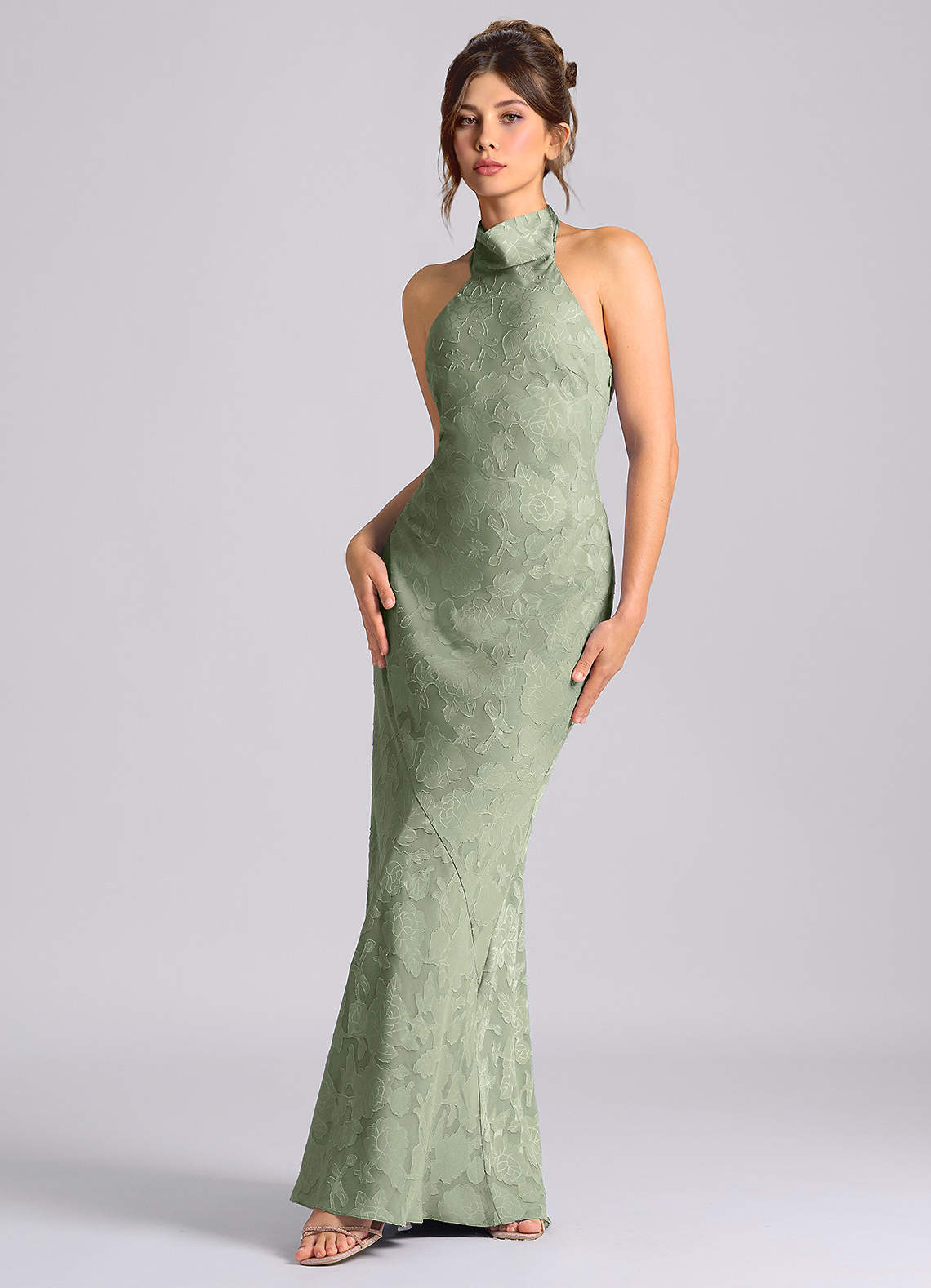 Jurk van Bloemen Burn-out met Zeemeermin Hoge Kraag Agave