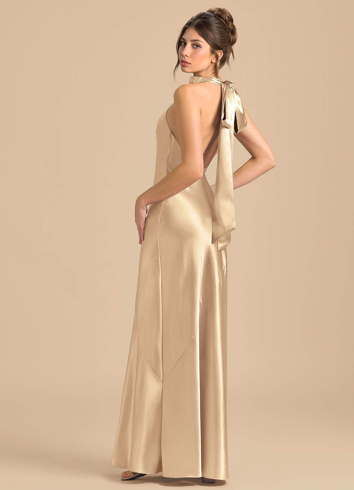 Jurk van Metaalachtig Satijn met Kolom Hoge Kraag Goud
