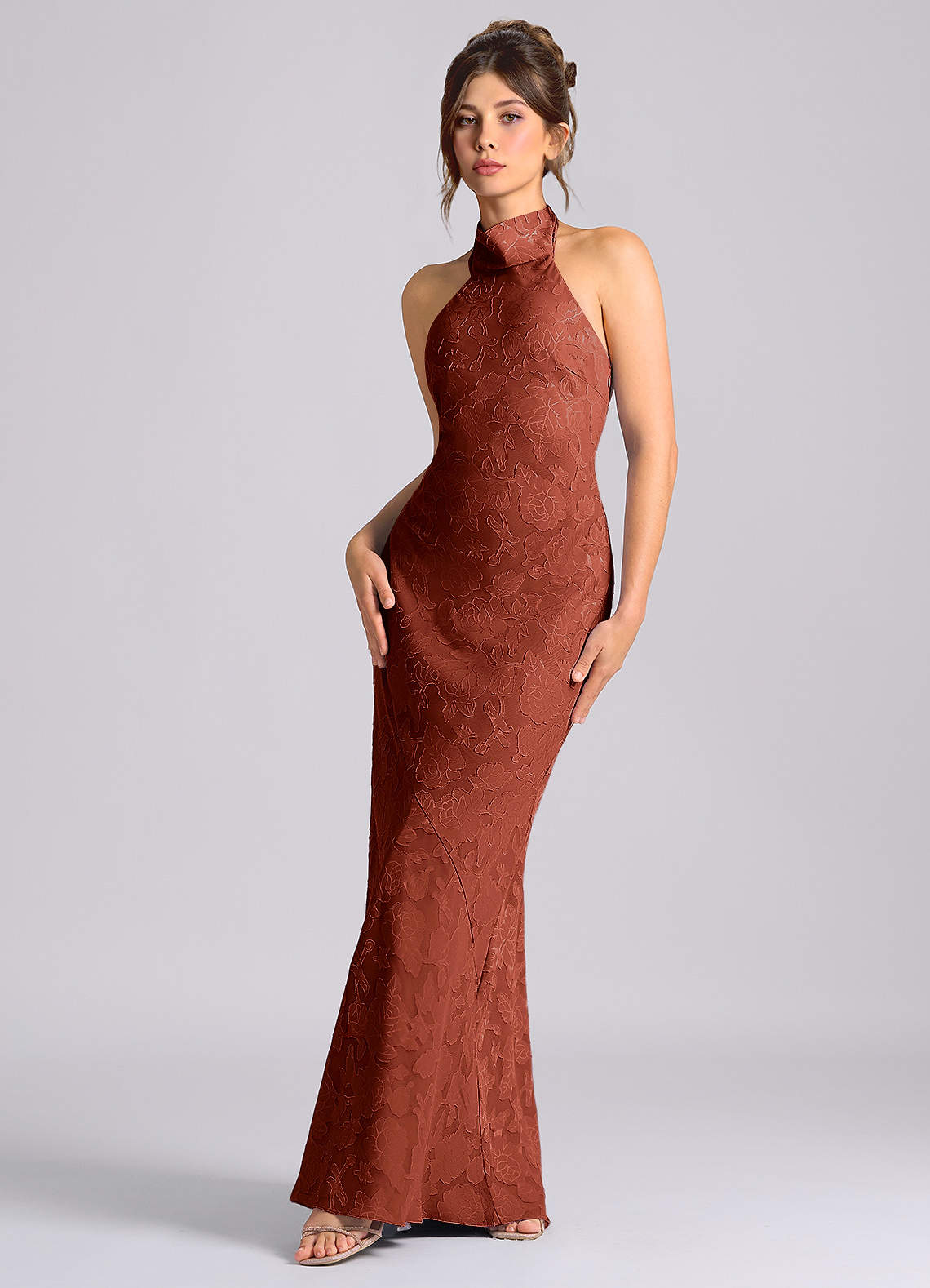 Jurk van Bloemen Burn-out met Zeemeermin Hoge Kraag Terracotta