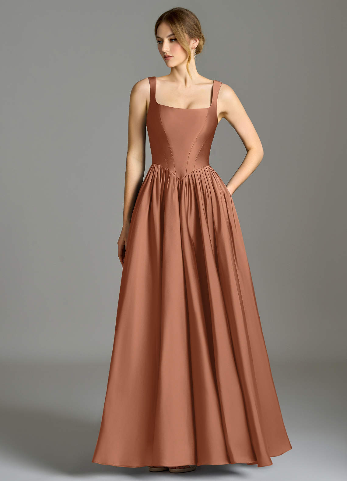 Jurk van Stretch Satijn met A-Lijn Geplooid Bronzeertint