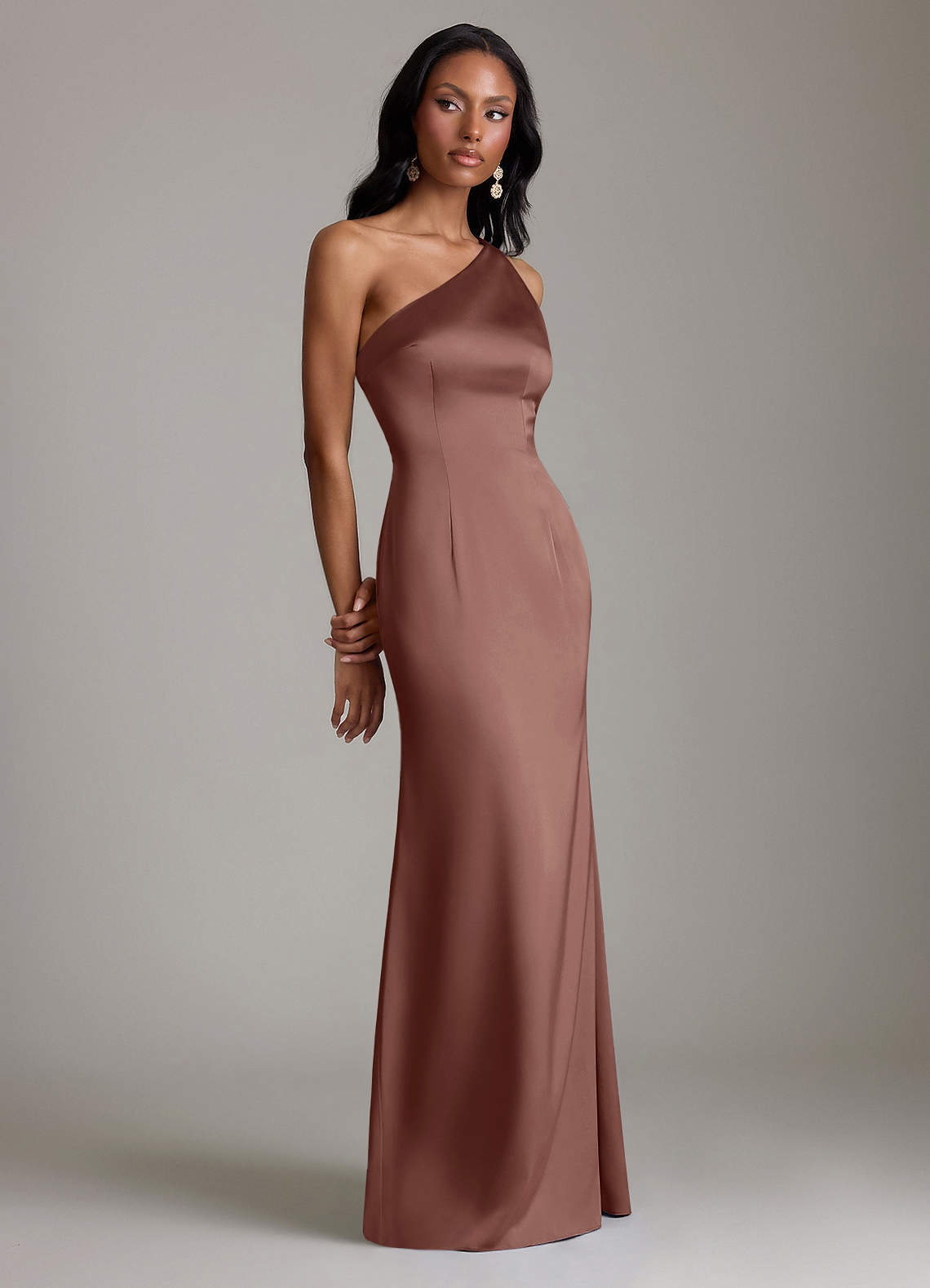 Jurk van Stretch Satijn met Zeemeermin One-Shoulder Espresso