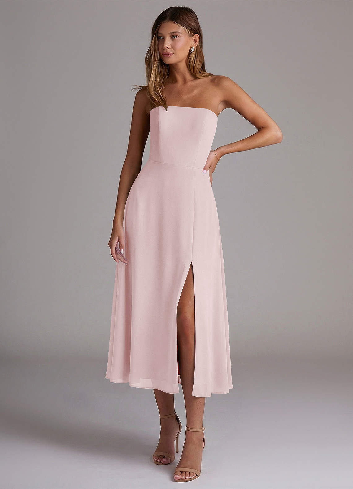 Jurk van Chiffon met A-Lijn Strapless Blozend Roze