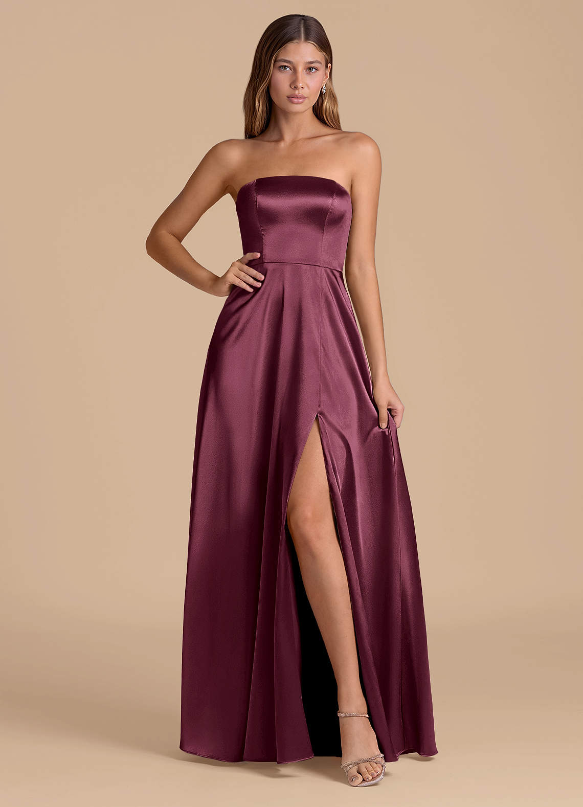 Jurk van Metaalachtig Satijn met A-Lijn Strapless Cabernet