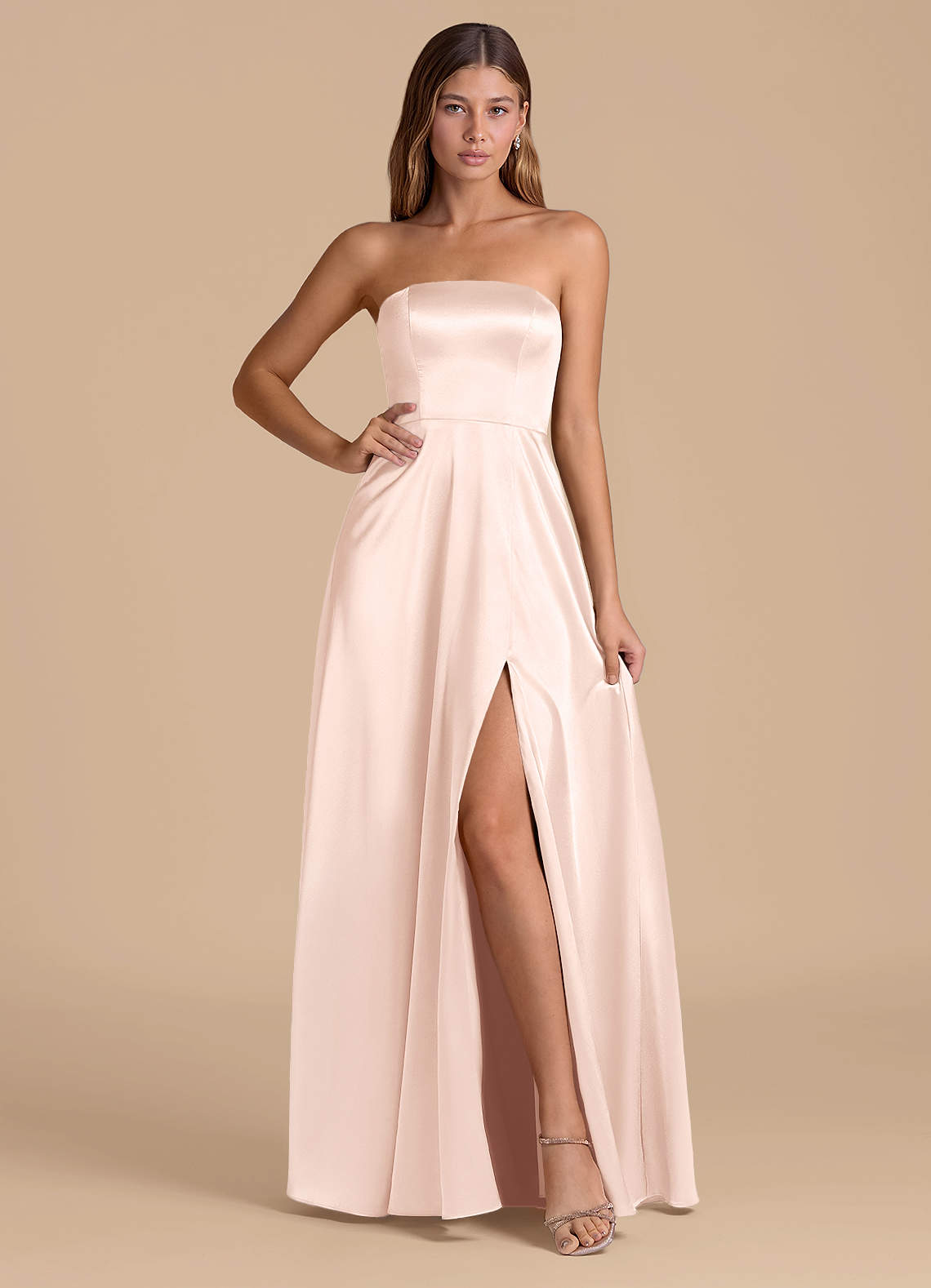 Jurk van Metaalachtig Satijn met A-Lijn Strapless Rosé Goud