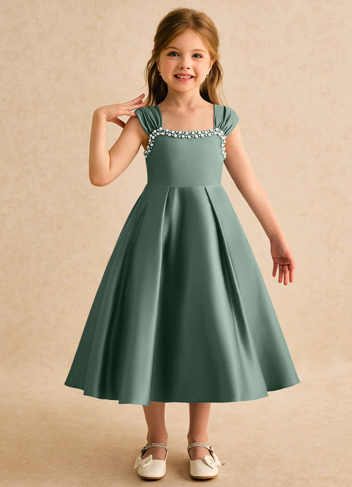Baljurk Jurk van Mat Satijn Sweetheart Halslijn Eucalyptus