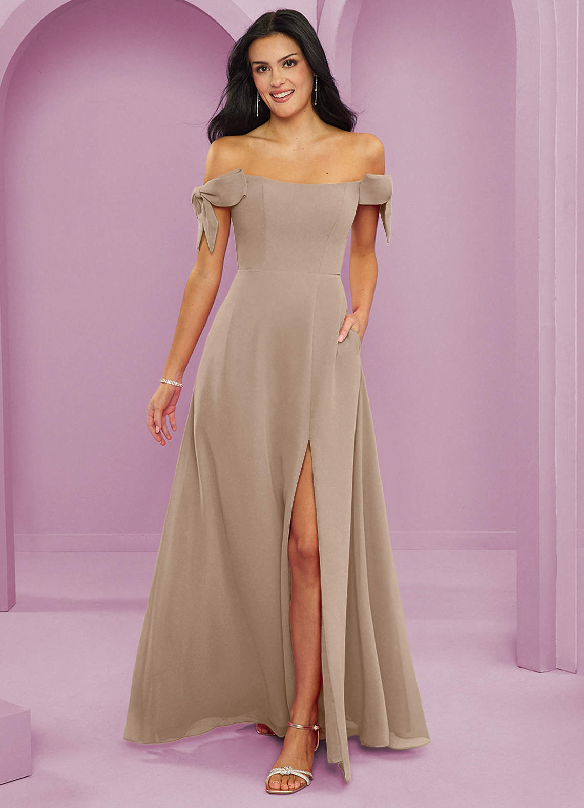 Converteerbaar Jurk van Chiffon met A-Lijn Off the Shoulder Taupe Taupe