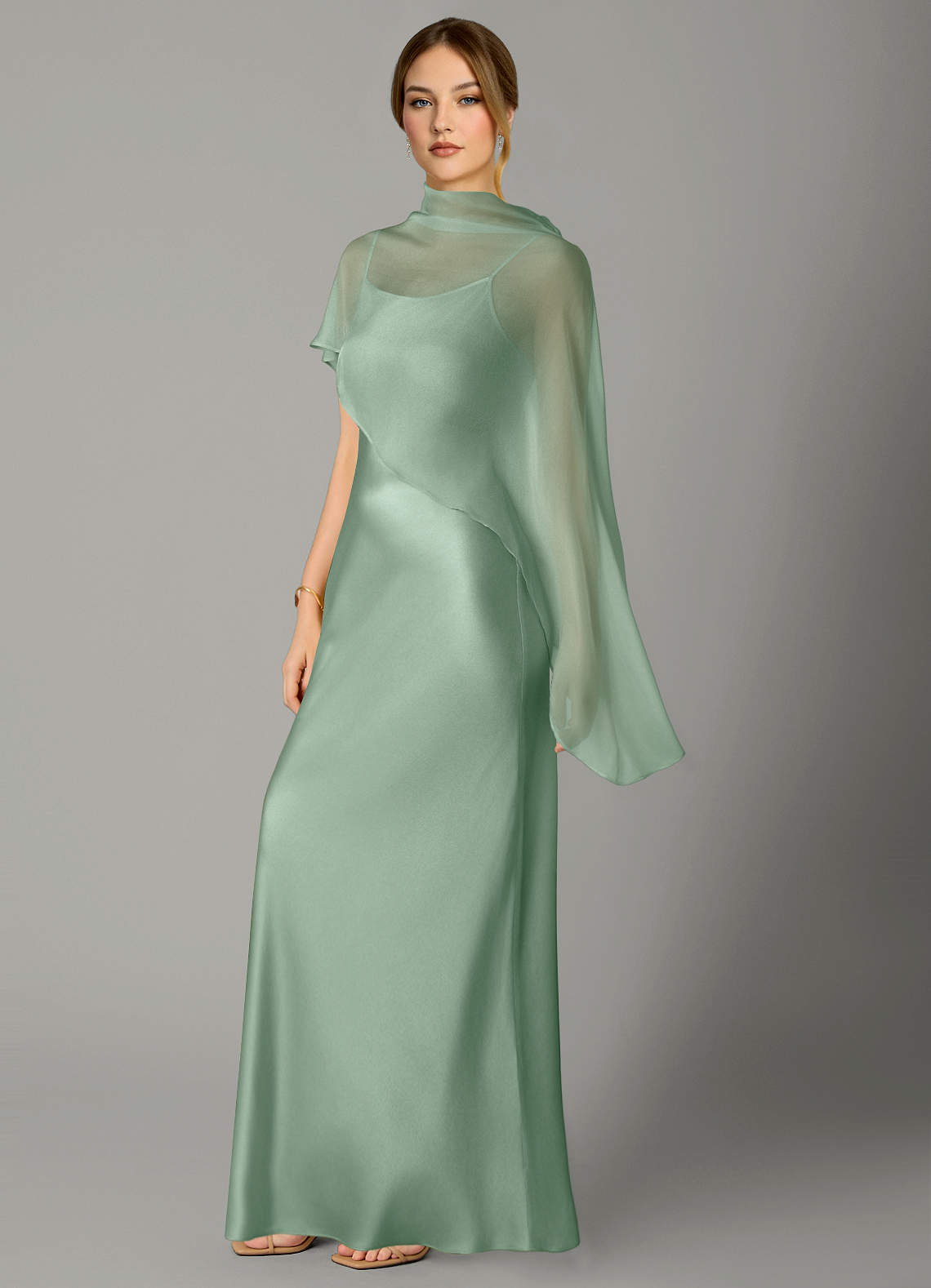 Jurk van Stretch Satijn met A-Lijn Hoge Kraag Agave