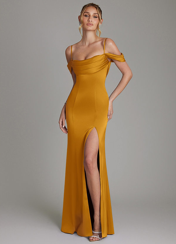 Osłona Pofałdowany Satyna elastyczna Do ziemi Sukienka