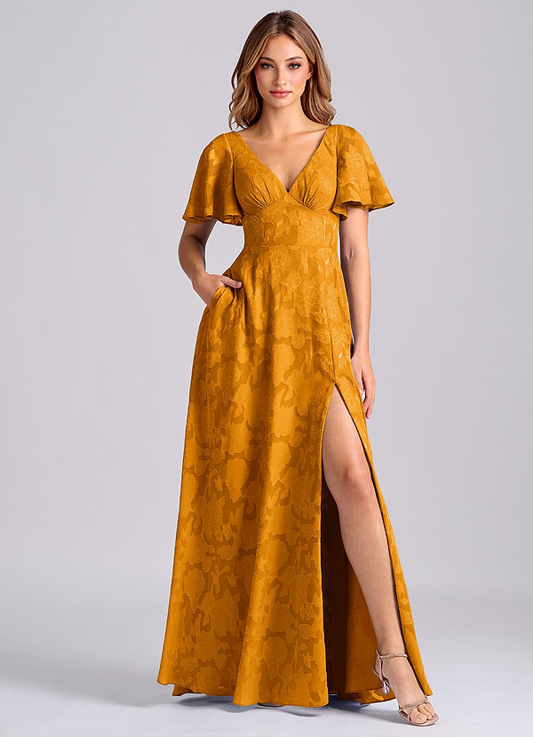 Żółty Kwiatowe Wypalenie Sukienki dla Druhen i Suknie