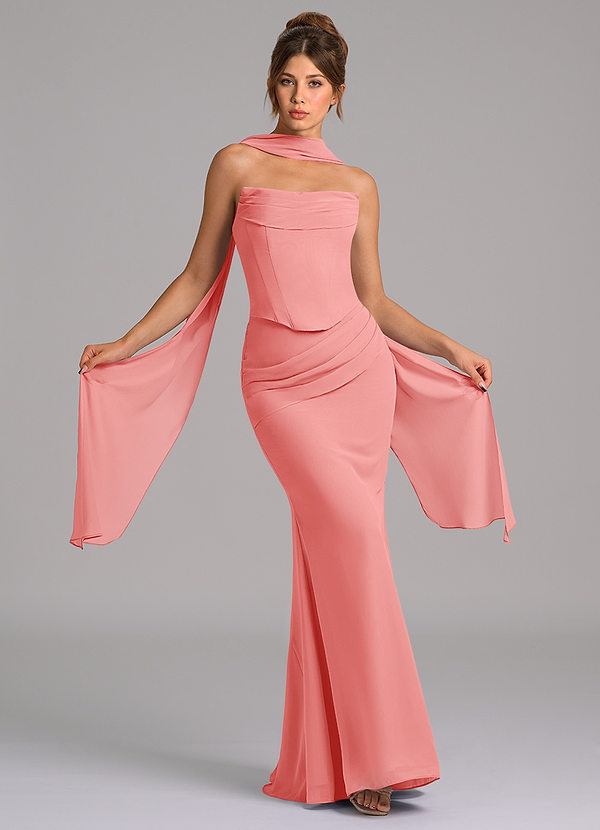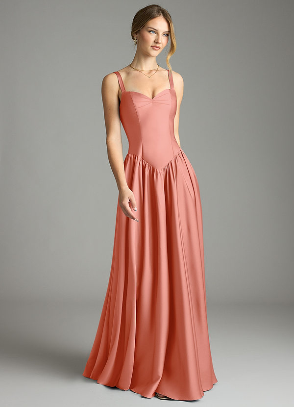 For my wedding I wanted a non-traditional pastel colored dress. After doing much research on wedding blogs I ordered the Azazie Justice in coral. The beadwork plus the way the skirt flowed was beautiful. I would recommend getting a custom sized dress just to feel secure.