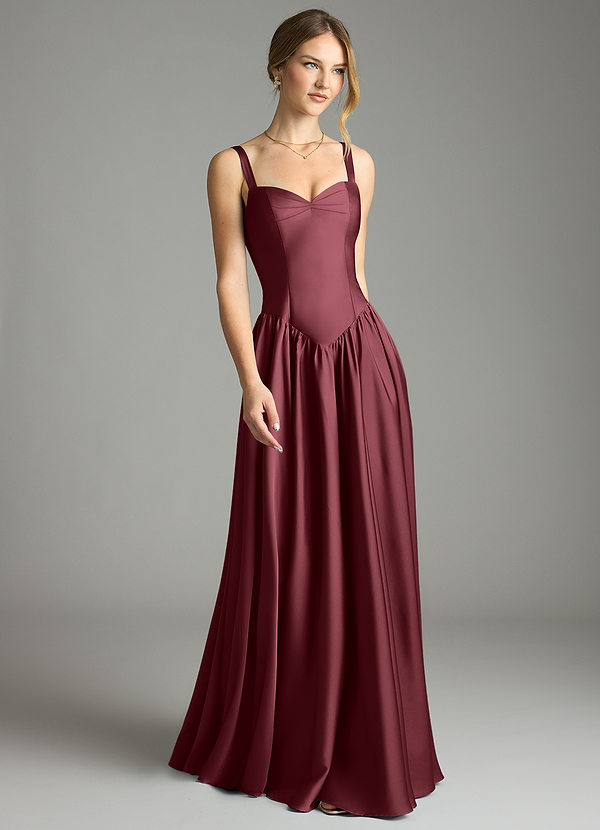 Inspired by the depth and complexity of your favorite wine, Merlot is a dark berry color that's close to maroon. A timelessly elegant color, Merlot is a go-to color for weddings that take place during colder months. Whether it's a long-sleeve lace gown or a strapless floor-sweeping number, Merlot delivers a flattering and sophisticated look.