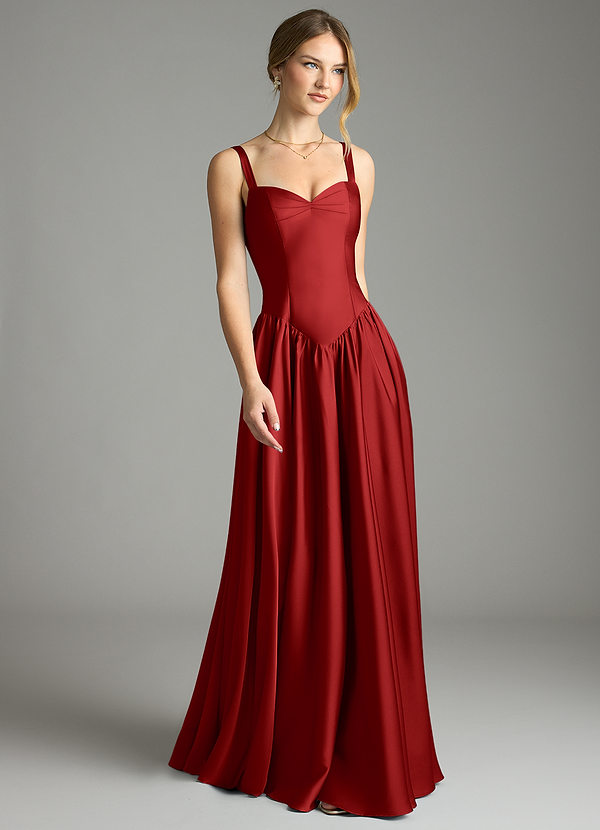 I chose pomegranate for my bridesmaids because it complemented by ivory dress and champagne colored shoes. I also wanted my bouquet to be pomegranate as my bridesmaids dresses to have some coordination. They all looked very elegant Azazie Maggie which complemented all their different skin tones and body types.