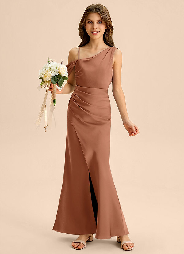 Osłona Zza ramienia Satyna elastyczna Długość podłogi Młodsza druhna Sukienka