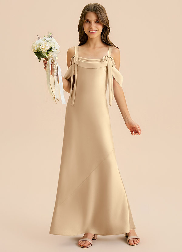 Osłona Zza ramienia Satyna elastyczna Długość podłogi Młodsza druhna Sukienka