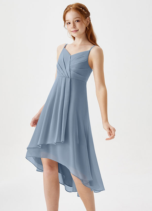 Linia A Pofałdowany Szyfon Długość podłogi Młodsza druhna Sukienka
