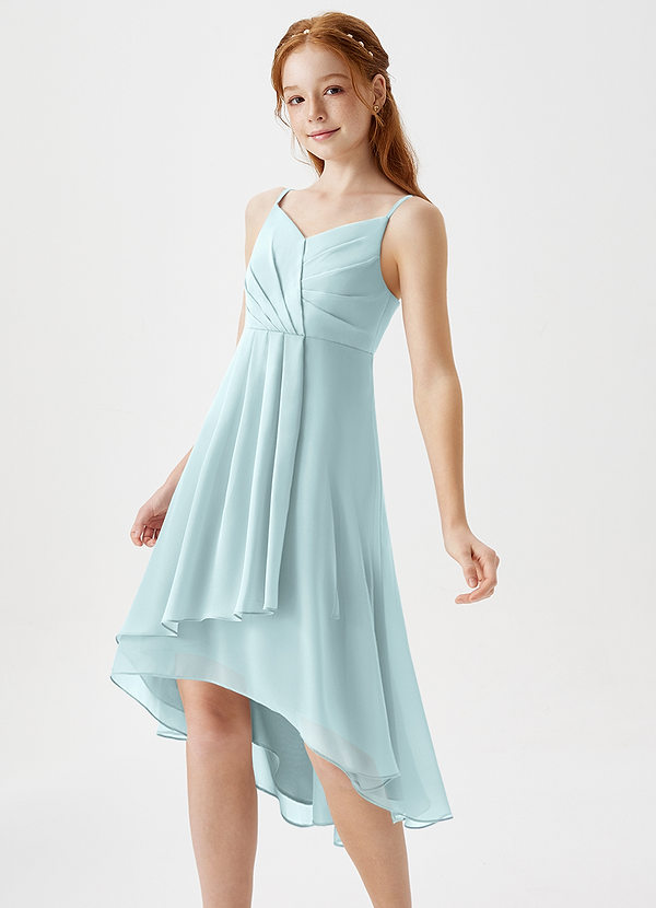 Linia A Pofałdowany Szyfon Długość podłogi Młodsza druhna Sukienka