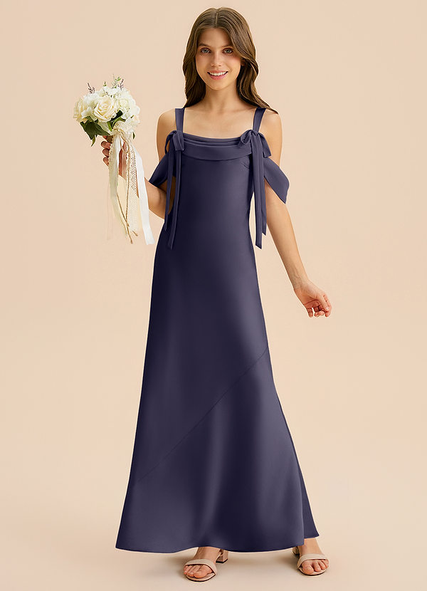 Osłona Zza ramienia Satyna elastyczna Długość podłogi Młodsza druhna Sukienka
