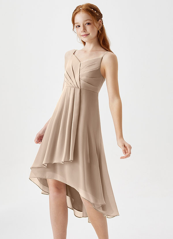 Linia A Pofałdowany Szyfon Długość podłogi Młodsza druhna Sukienka
