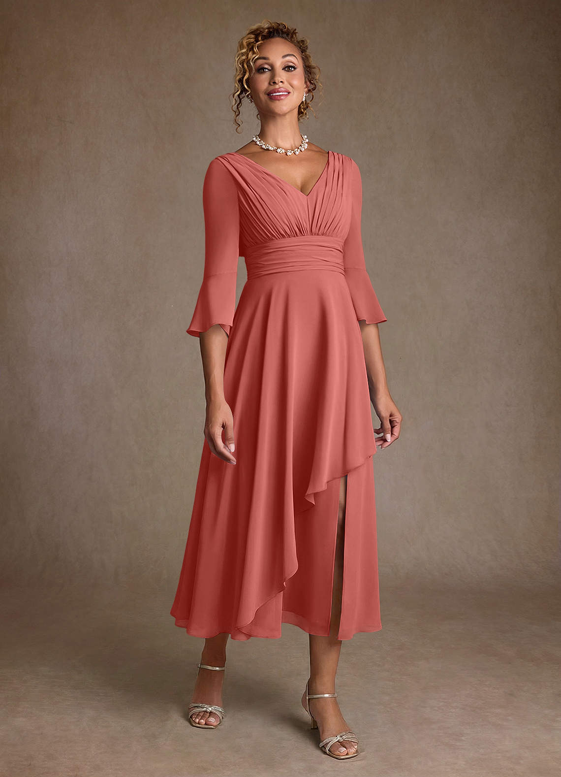 Linia A Pofałdowany Szyfon Długość herbaty Sukienka