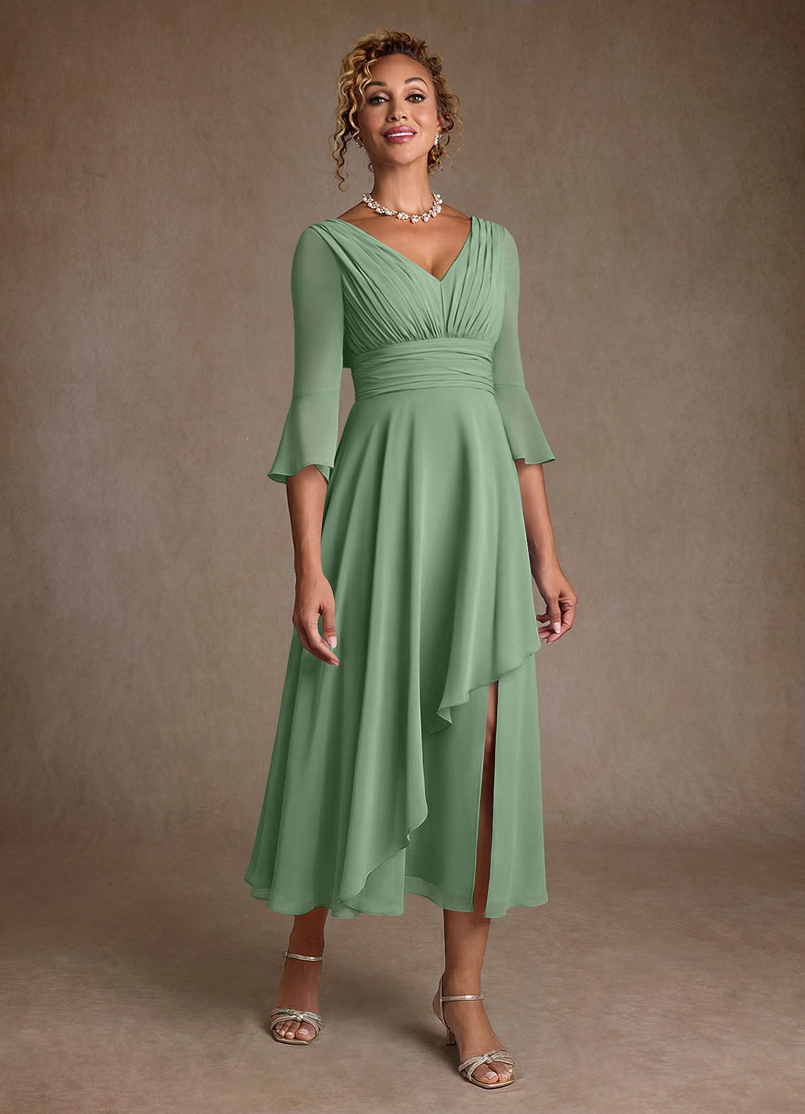 Linia A Pofałdowany Szyfon Długość herbaty Sukienka