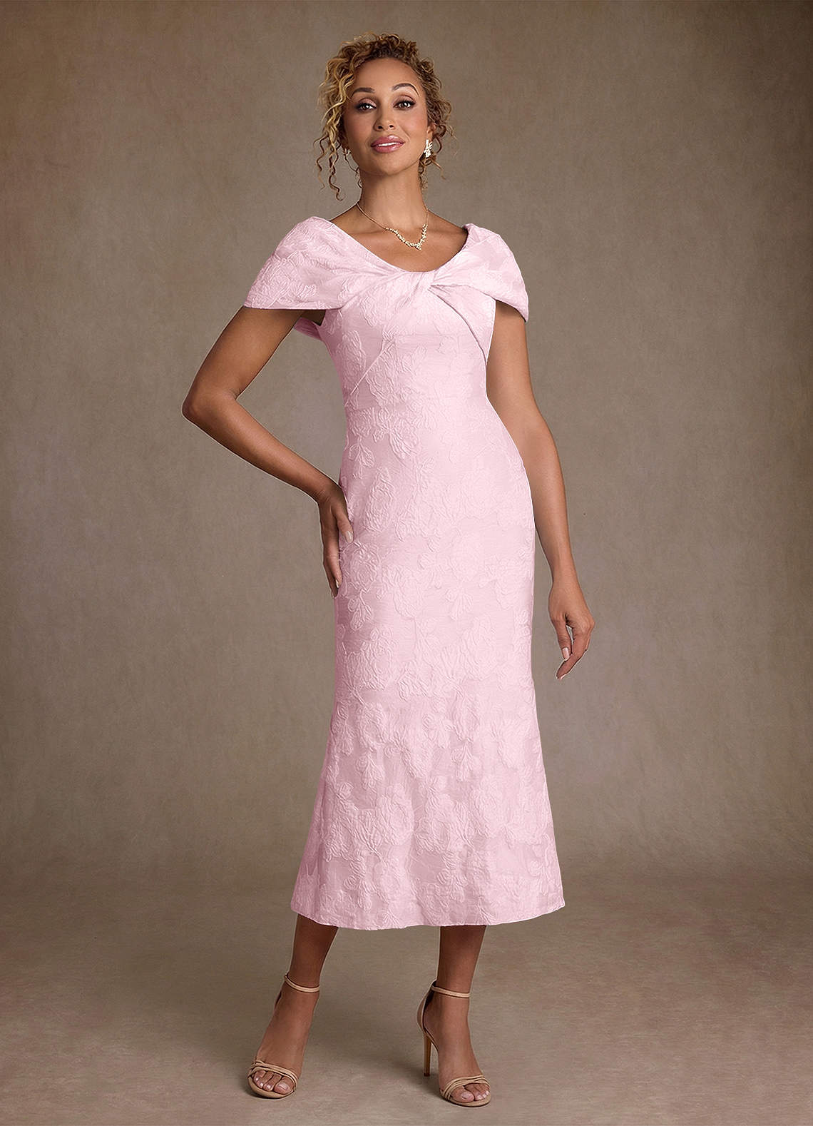 Syrena Zza ramienia Żakard kwiatowy Długość herbaty Sukienka