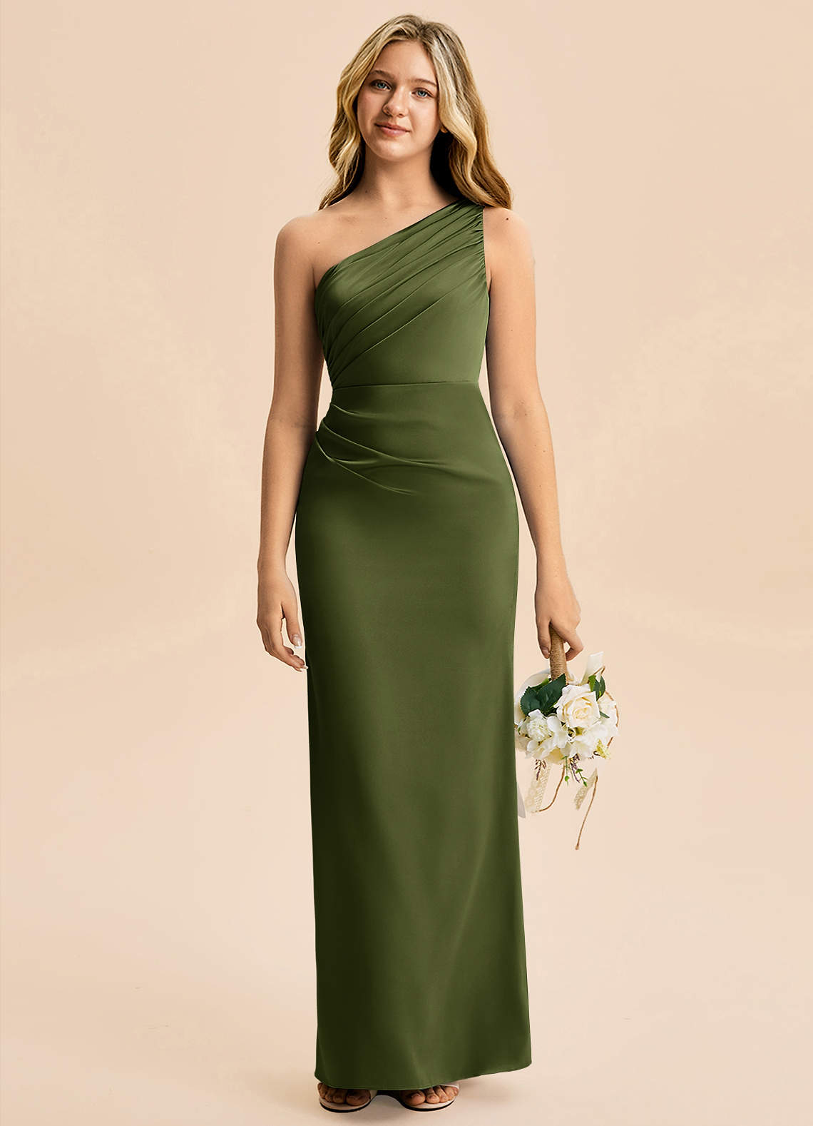 Osłona Pofałdowany Satyna elastyczna Długość podłogi Młodsza druhna Sukienka
