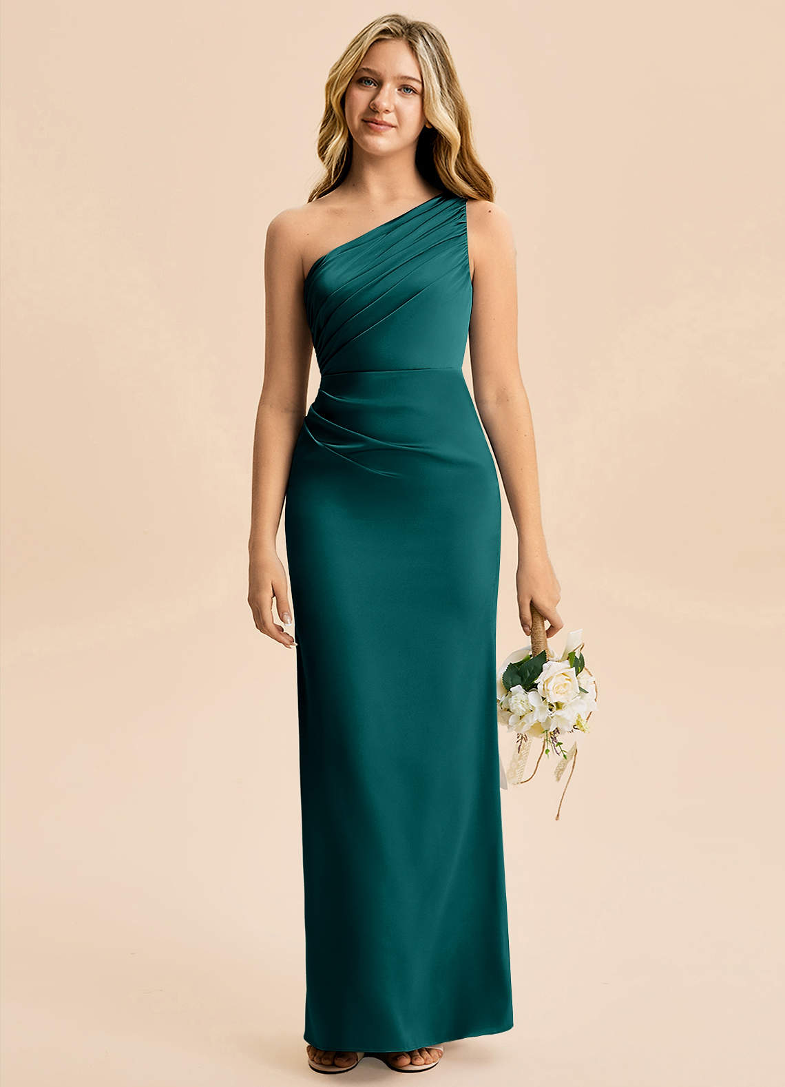 Osłona Pofałdowany Satyna elastyczna Długość podłogi Młodsza druhna Sukienka