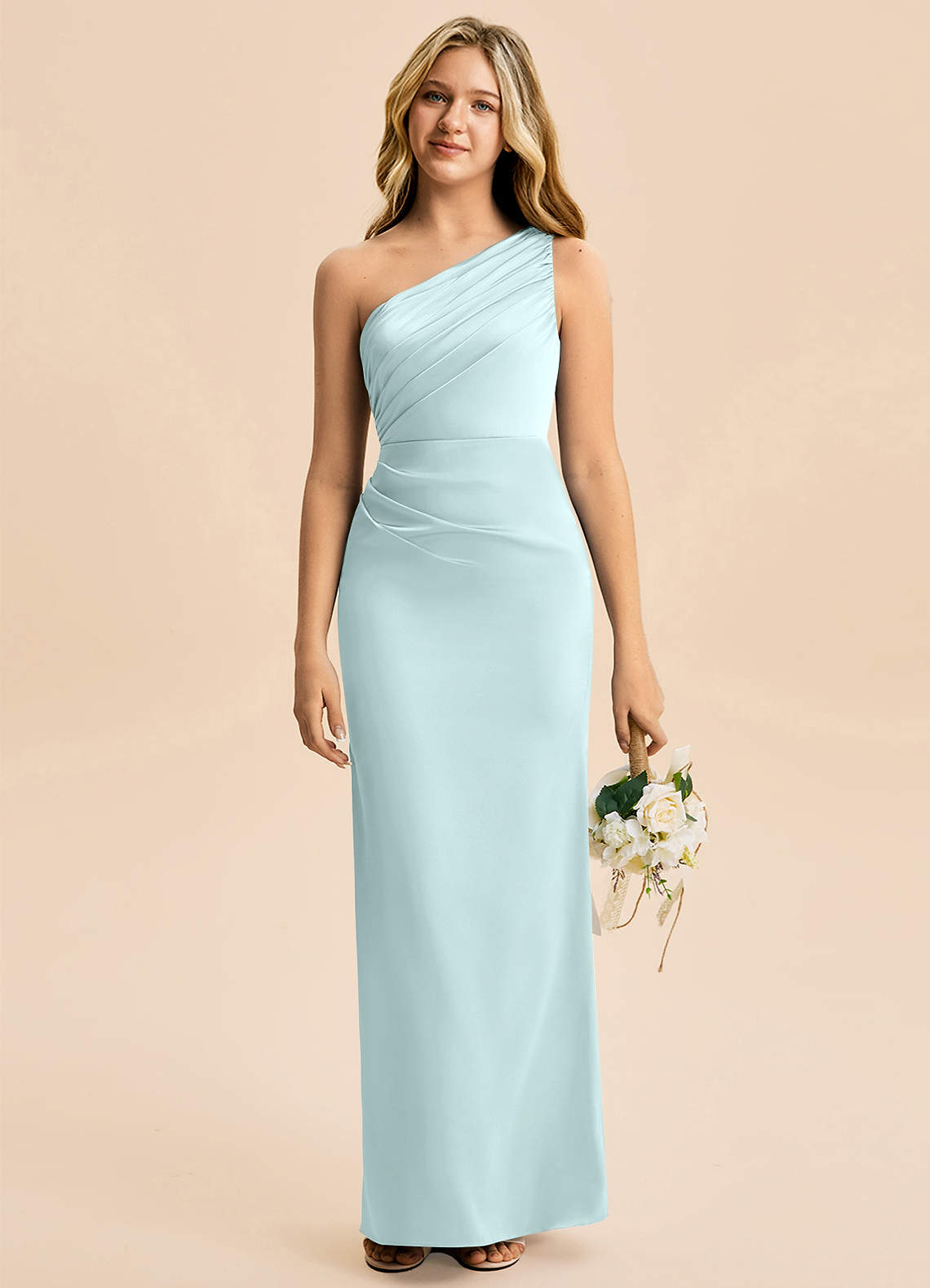 Osłona Pofałdowany Satyna elastyczna Długość podłogi Młodsza druhna Sukienka