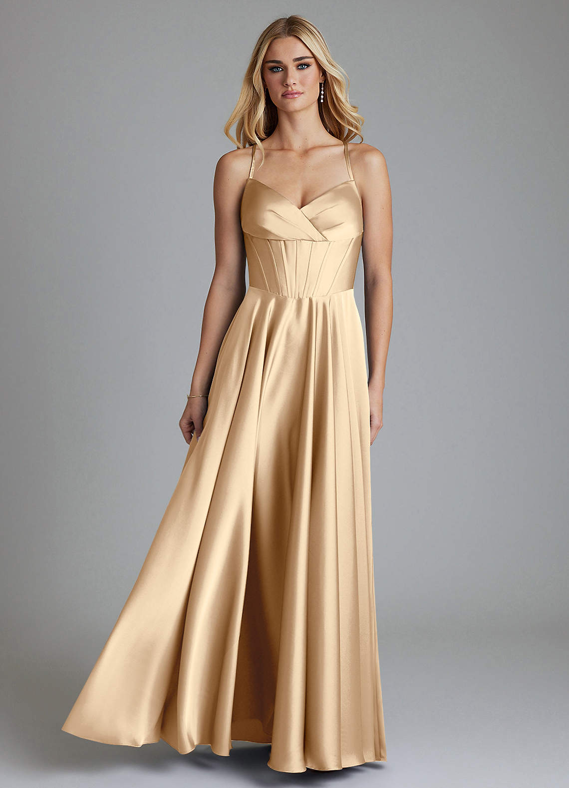 Linia A Gorset Satyna elastyczna Do ziemi Sukienka