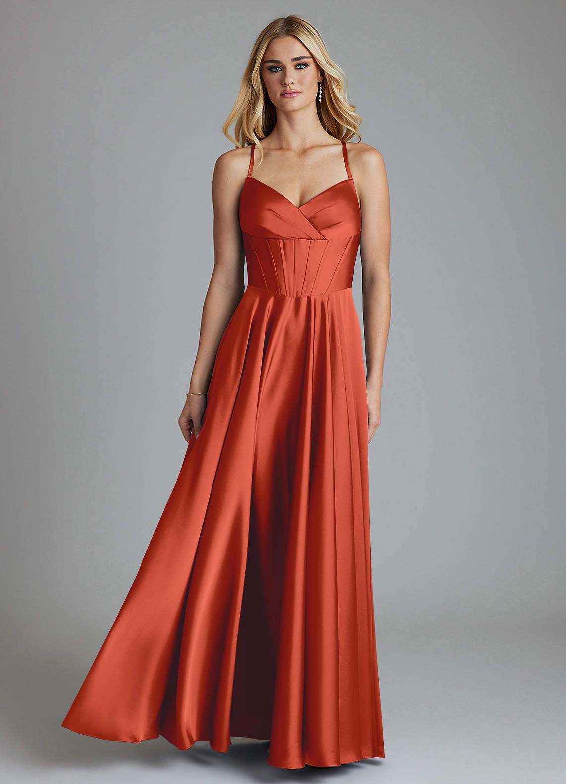 Linia A Gorset Satyna elastyczna Do ziemi Sukienka
