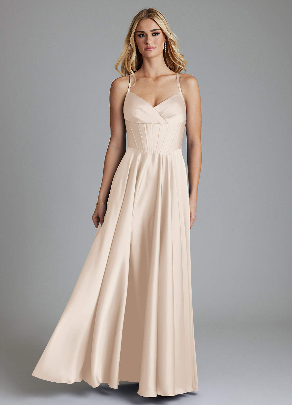 Linia A Gorset Satyna elastyczna Do ziemi Sukienka