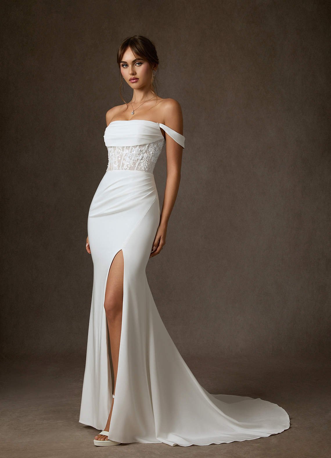 Syrena Zza ramienia Satyna z tyłu Crepe Pociąg sądowy Sukienka