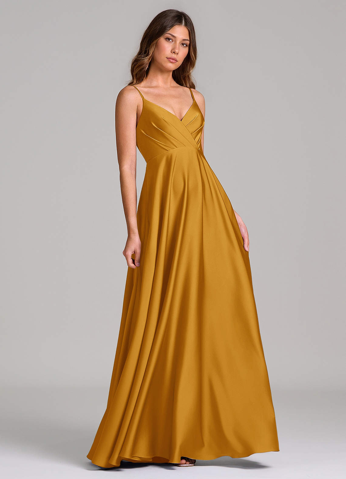 Linia A Pofałdowany Satyna elastyczna Do ziemi Sukienka