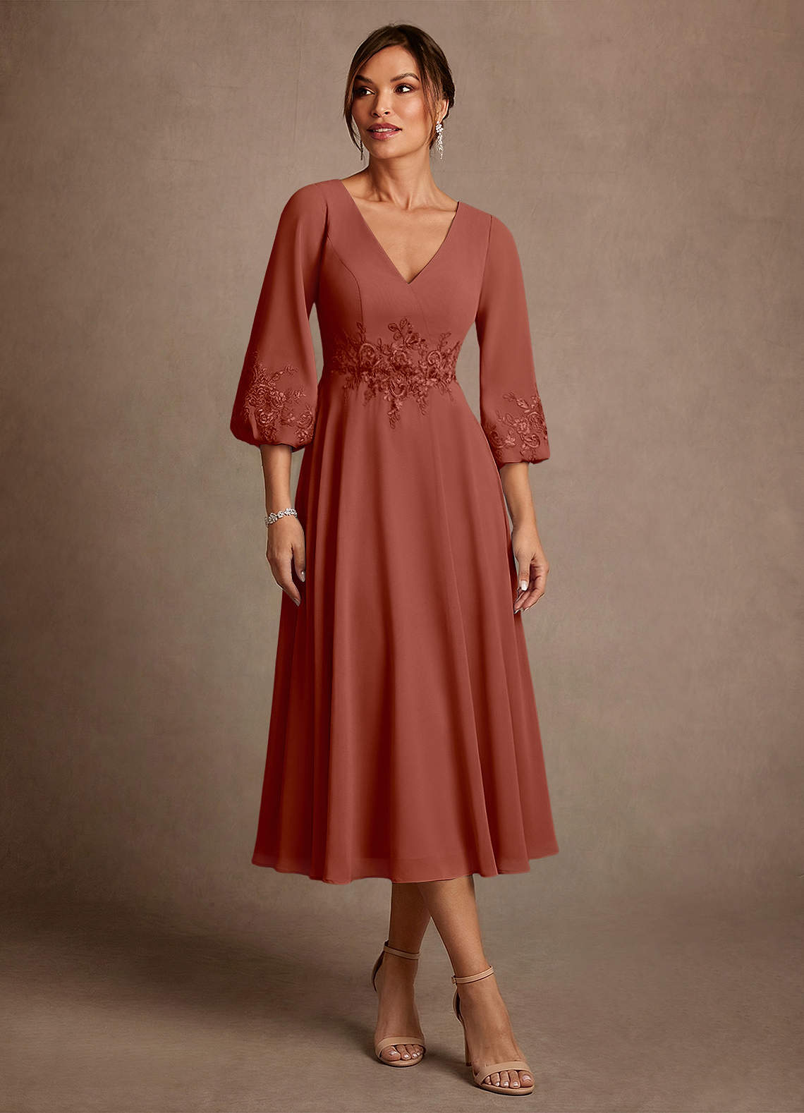 Linia A Koronka Szyfon Długość herbaty Sukienka