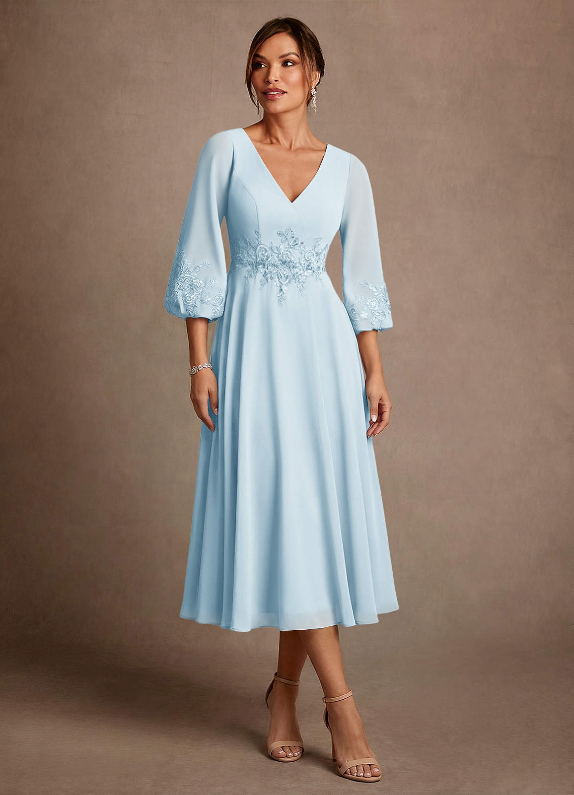 Linia A Koronka Szyfon Długość herbaty Sukienka