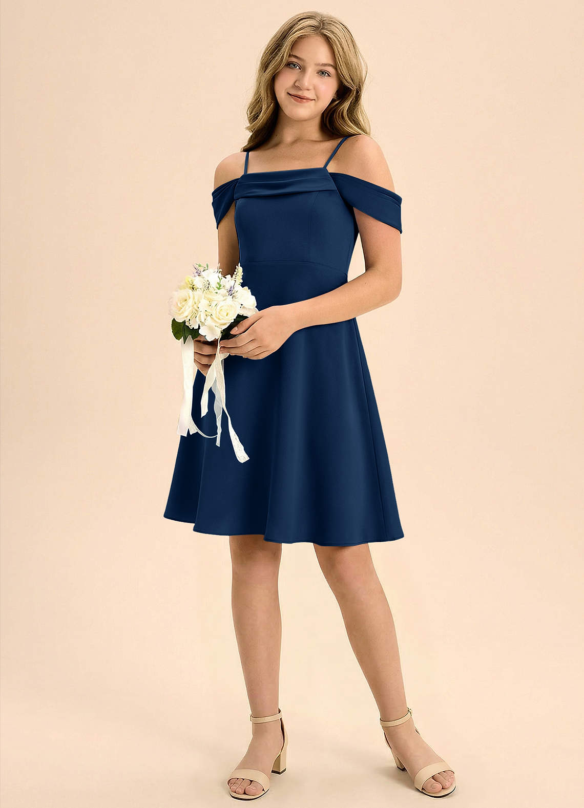 Linia A Pofałdowany Satyna elastyczna Mini Młodsza druhna Sukienka